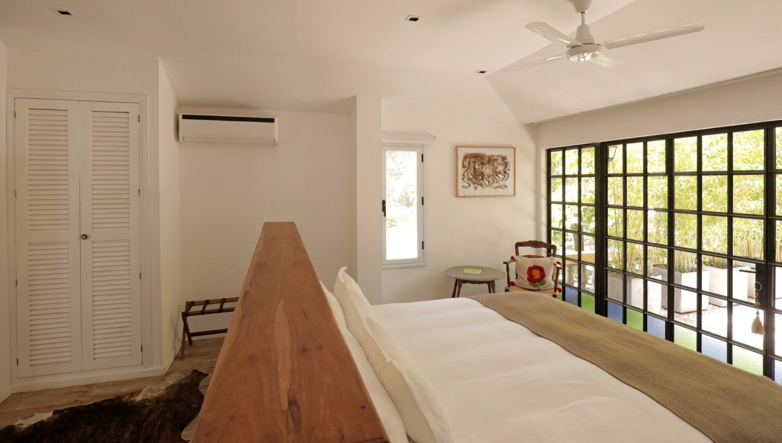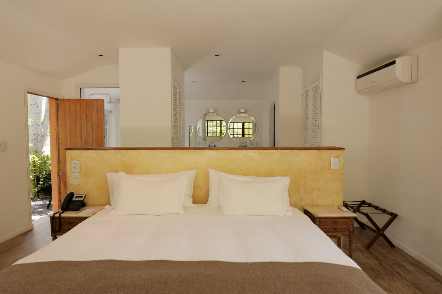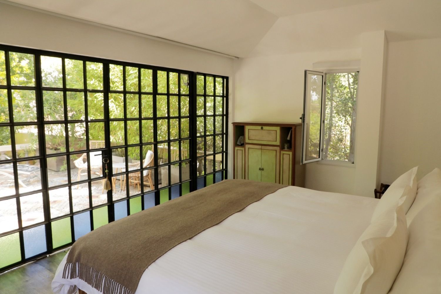 Up a short set of steps, this delightful room opens onto a large private terrace through a pair of double doors. Surrounded by trees, the terrace feels secluded and peaceful, yet still offers views of the vineyard and, on clear days, the snow-capped Andes in the distance.