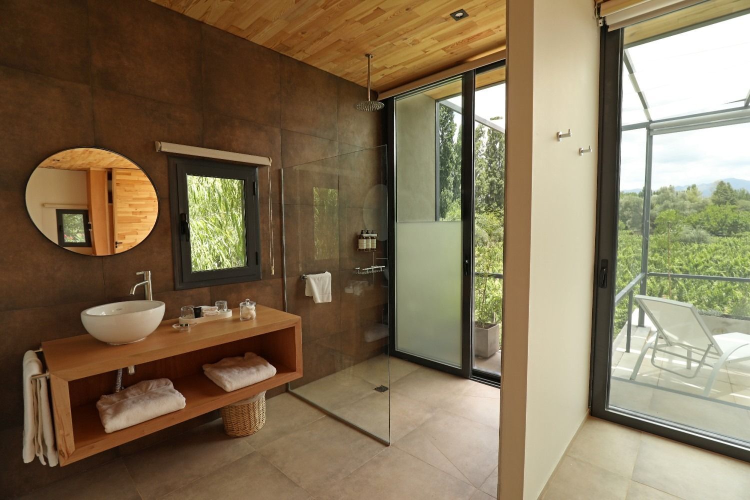 Located at the farthest end of the property, this modern room offers ultimate privacy and exceptional views. Up a short set of stairs, the spacious terrace provides panoramic vistas of the vineyard and the snow-capped Andes. From the bed, you can look directly onto the vines, creating the perfect backdrop for a peaceful morning.