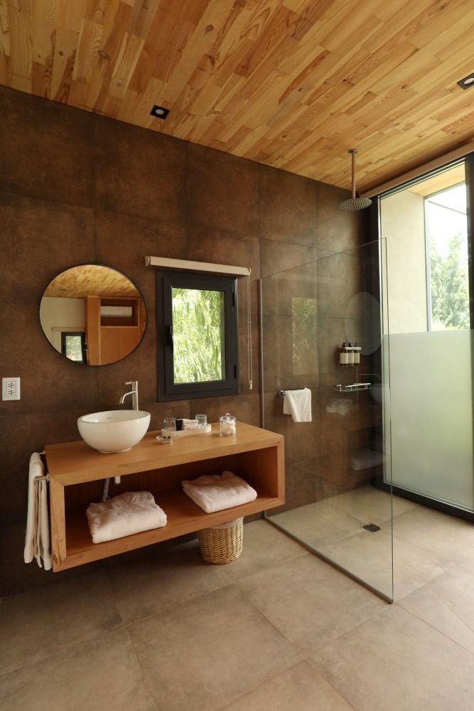 Inside, the room features warm wooden accents that create a cozy and inviting atmosphere. The bathroom includes a shower with a spectacular view of the mountains, allowing you to refresh while soaking in the beauty of the surroundings.