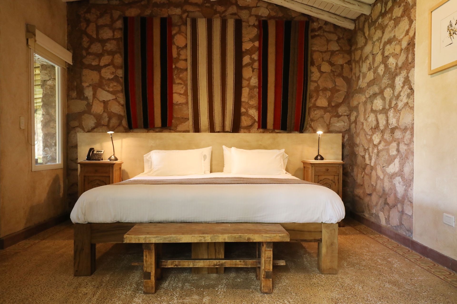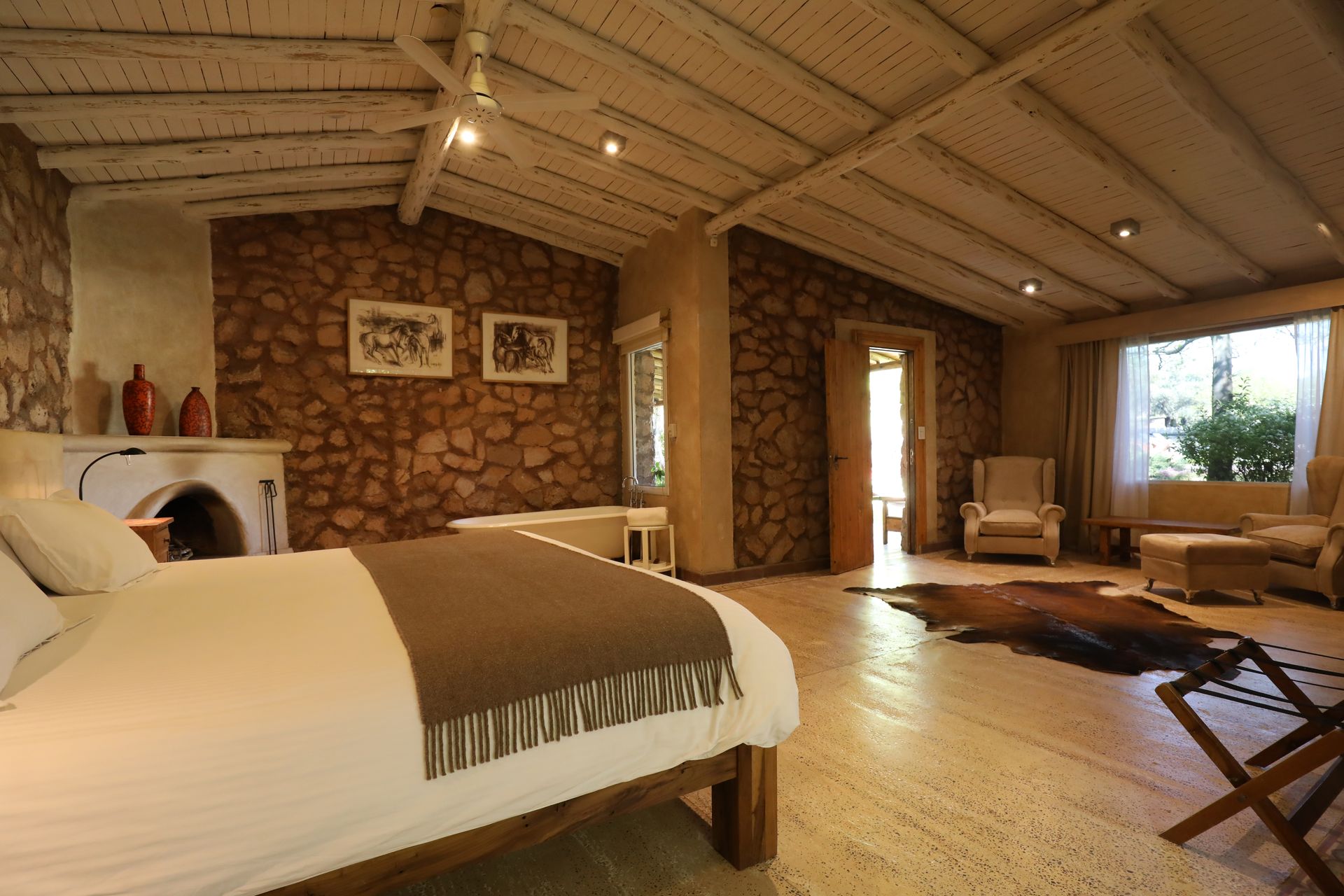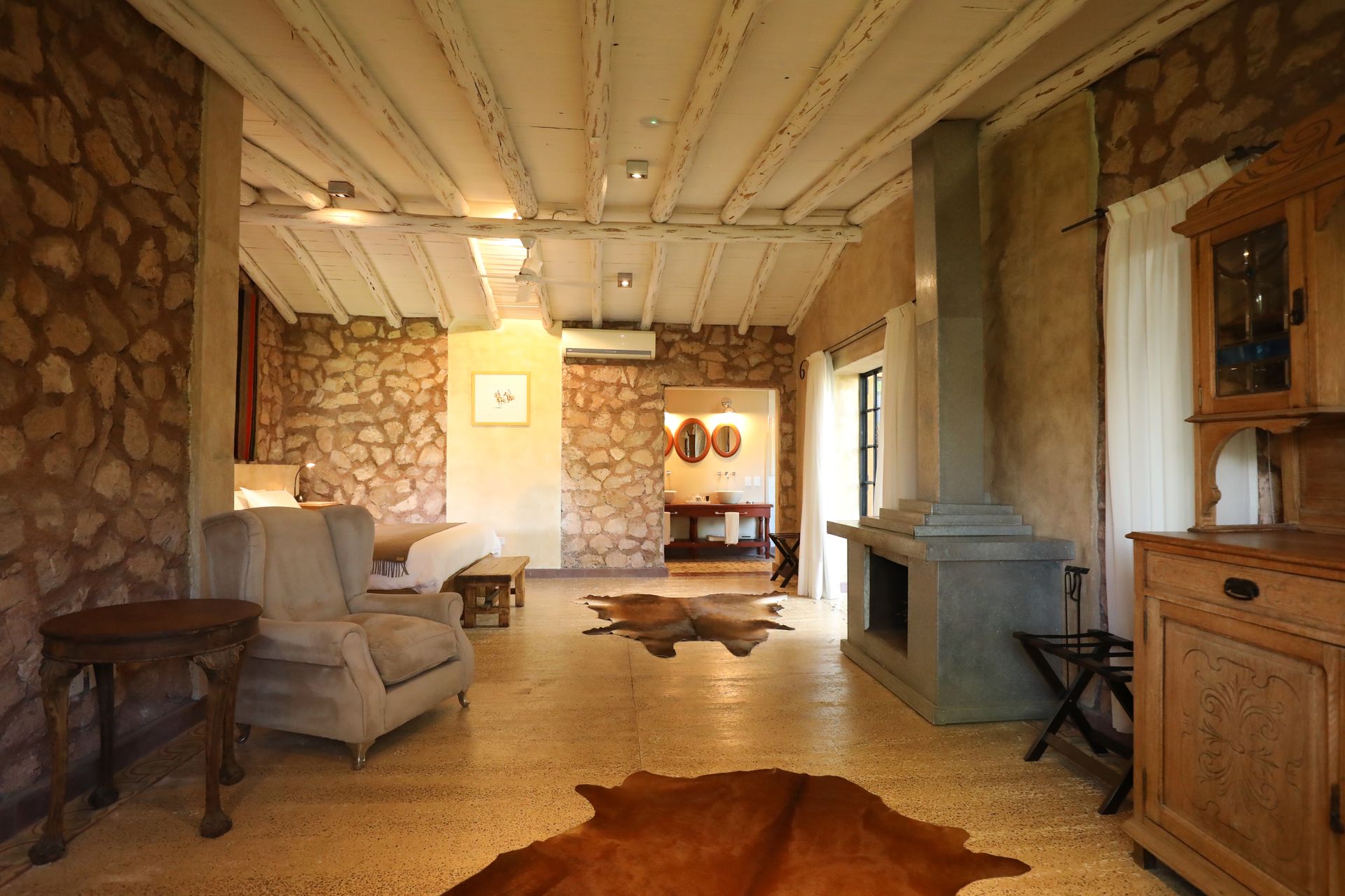 The original stone walls create a unique atmosphere, blending seamlessly with the surrounding countryside. Each suite includes a bathtub and a wood-burning fireplace, offering the perfect setting for deep relaxation after a day in Mendoza’s wine country.